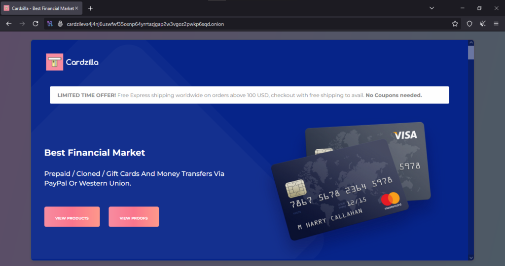 Onion Link : http://cardzilevs4j4nj6uswfwf35oxnp64yrrtazjgap2w3vgoz2pwkp6sqd.onion/